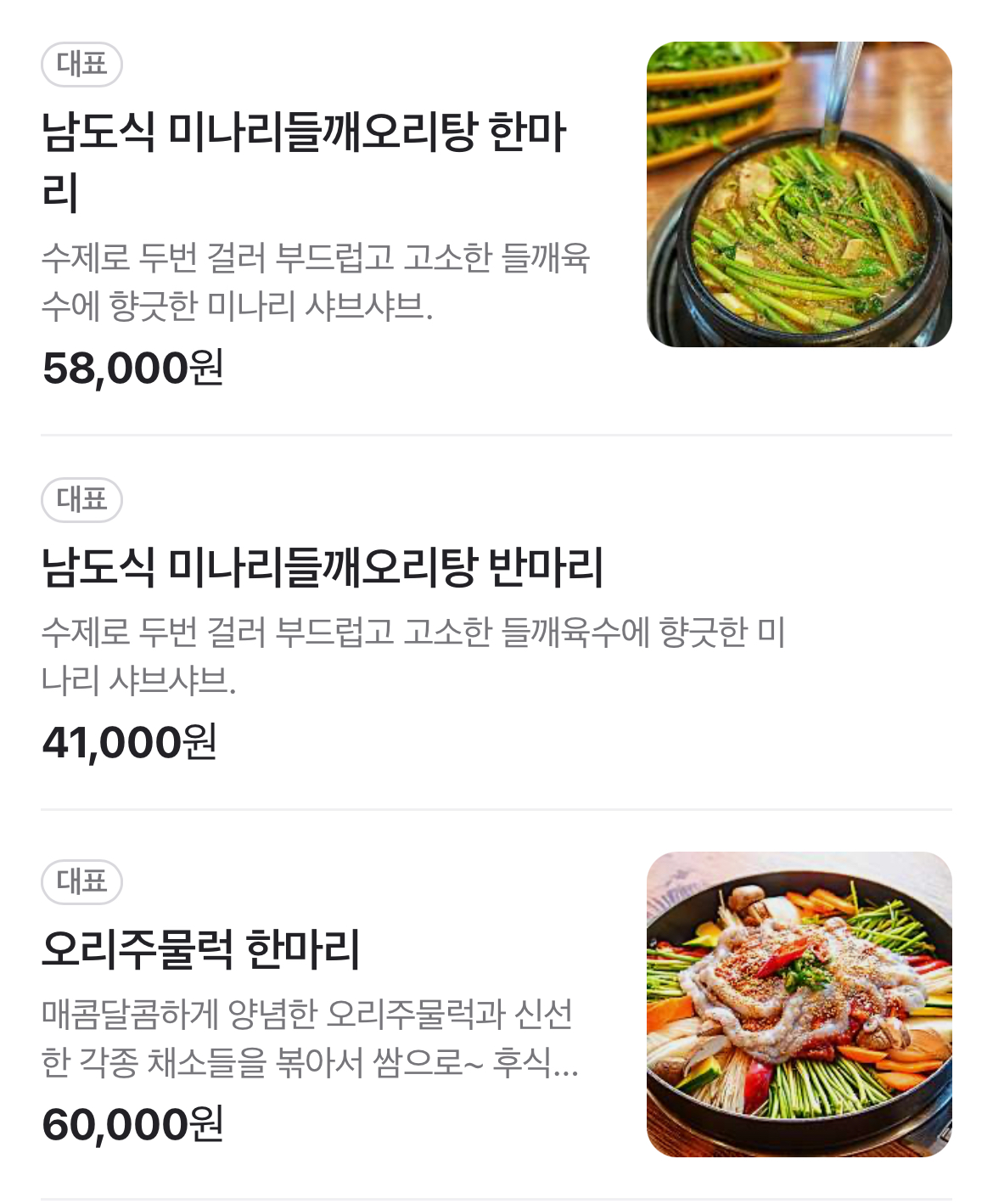 밀키트 구매 가능: 네이버 스마트스토어에서 ‘남도미나리들깨오리탕’ 검색