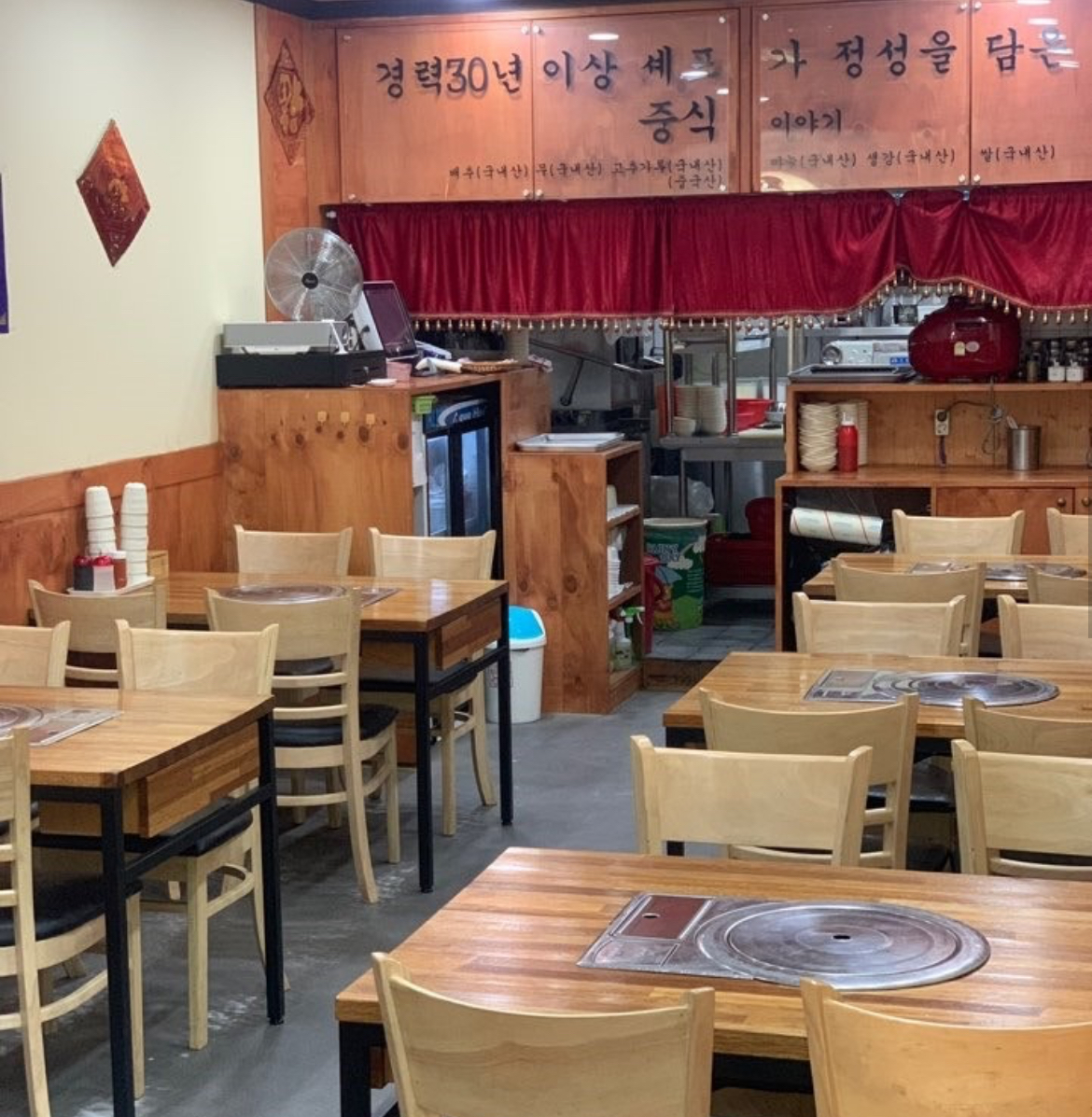 레트로한 중식당 느낌이 살아있으면서도 현대적인 깔끔함이 더해진 공간.