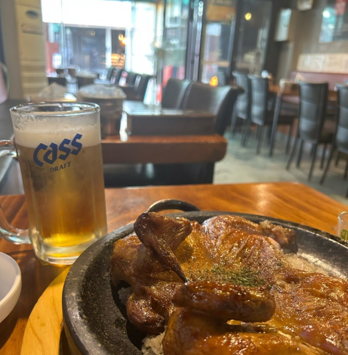 이곳의 통닭은 참나무 장작으로 90분 이상 정성스럽게 구워내 진한 풍미와 고소함을 자랑하죠.