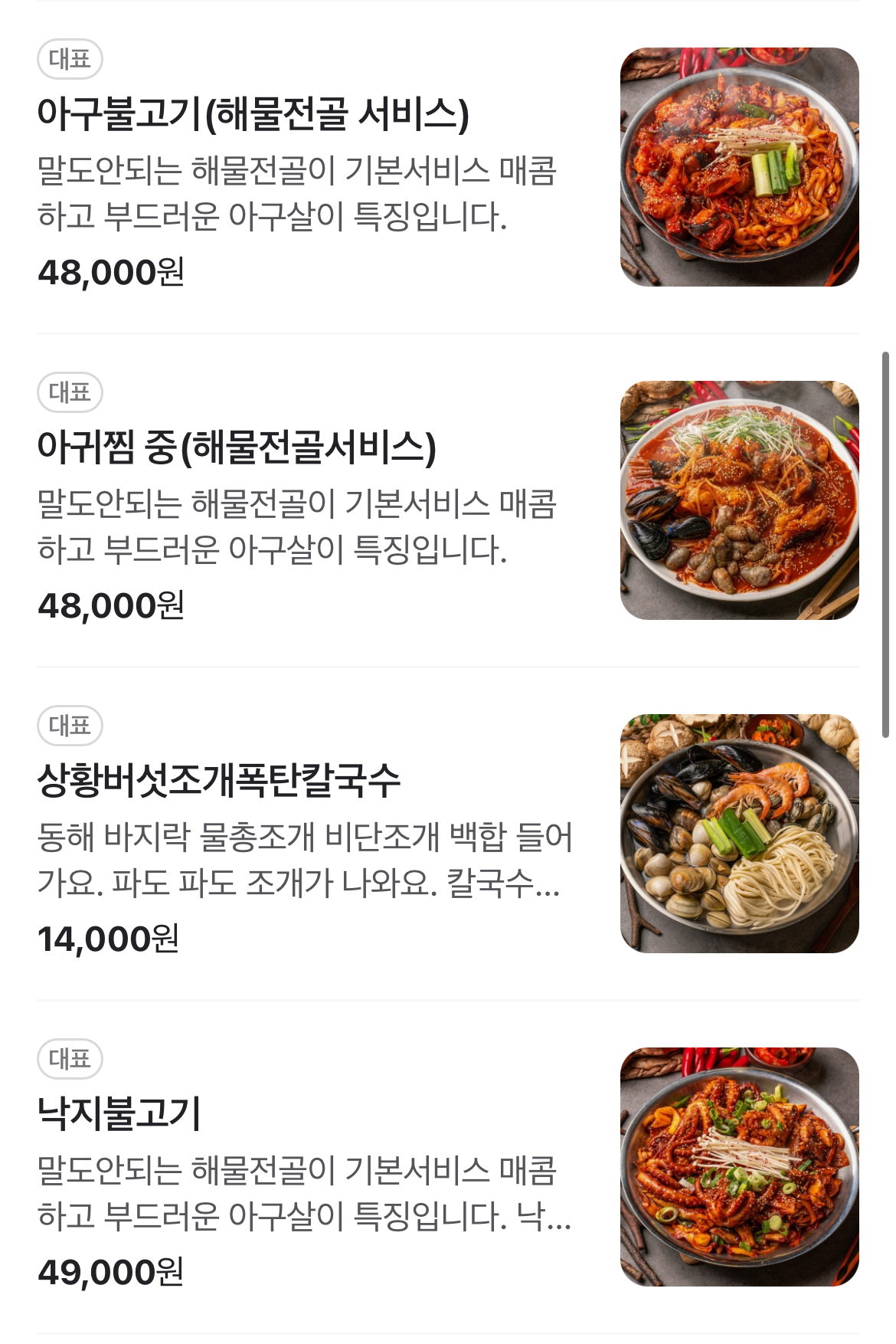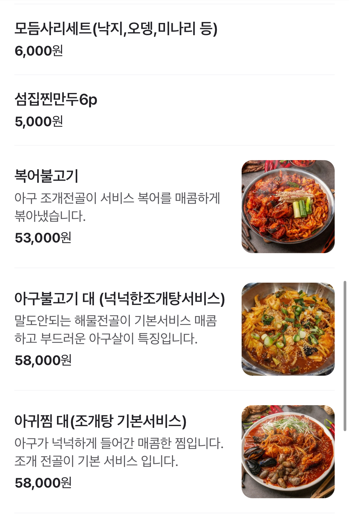 • 아구불고기 (해물전골서비스): 48,000원