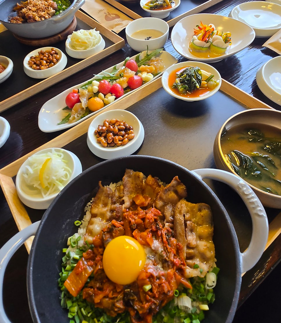 • 김치볶음 로스구이 솥밥: 불향 가득한 로스와 고소한 김치의 조화