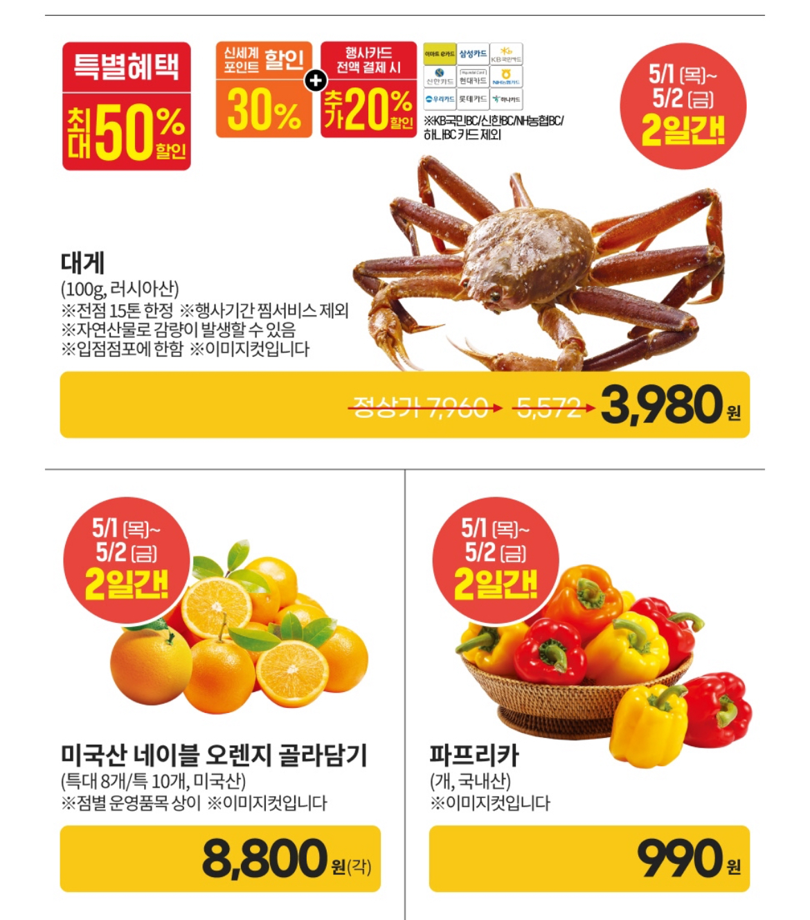 신세계포인트 회원이면서 행사카드로 결제하면 더 큰 할인 혜택을 받을 수 있어요.