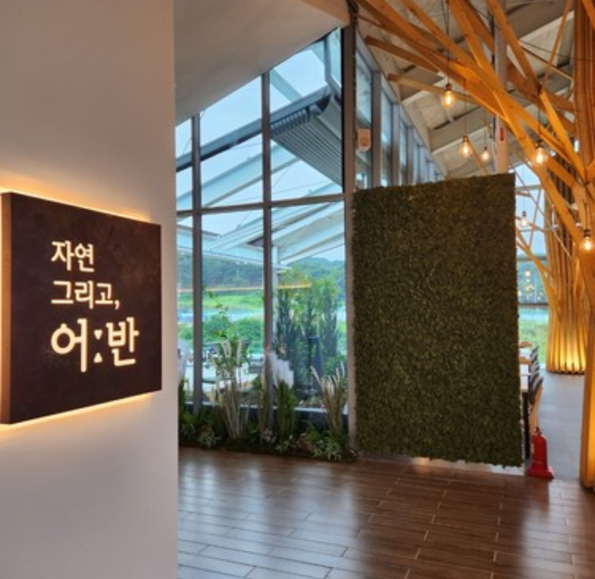 자연그리고어반 화성직영점은 넓고 쾌적한 실내 공간과 감성적인 인테리어로 방문객들의 눈길을 사로잡습니다. 특히 통창으로 들어오는 자연광과 숲속을 연상시키는 인테리어는 마치 도심 속 힐링 공간에 온 듯한 느낌을 줍니다. 또한, 야외 테라스가 마련되어 있어 식사 후 여유로운 시간을 보내기에 좋습니다.